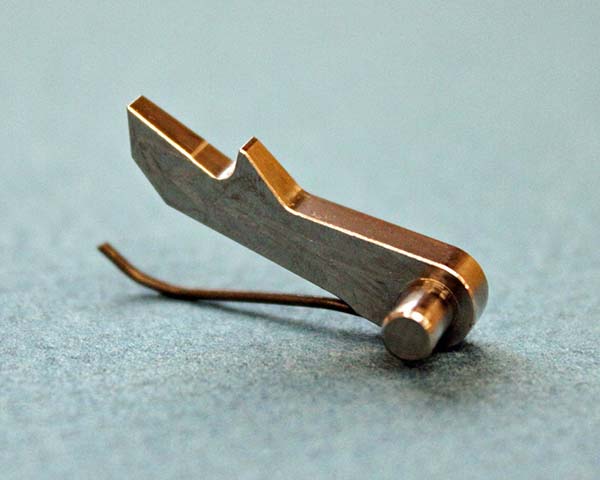 This Kirst 2-Step Hand is specifically designed to improve the lock up of Uberti or Pietta percussion revolvers converted with 5 shot Kirst Cartridge Konverters. It allows the 1860 Army, including the .45 caliber 1851 Navy Model and the Dance revolver, to function smoothly and more dependably than the factory-made hand. In addition, this Kirst hand spring is stronger and less apt to fail, which is common with the factory hands.