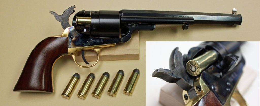 Once converted, these Pietta revolvers can fire Standard Pressure and Cowboy Action ammo in .45 LC and .45 Schofield, or .45 ACP. Note: The use of jacketed ammo may cause slightly more wear to the bore of the barrel than using lead bullets. Don’t use +P ammo or any other high-pressure ammunition.