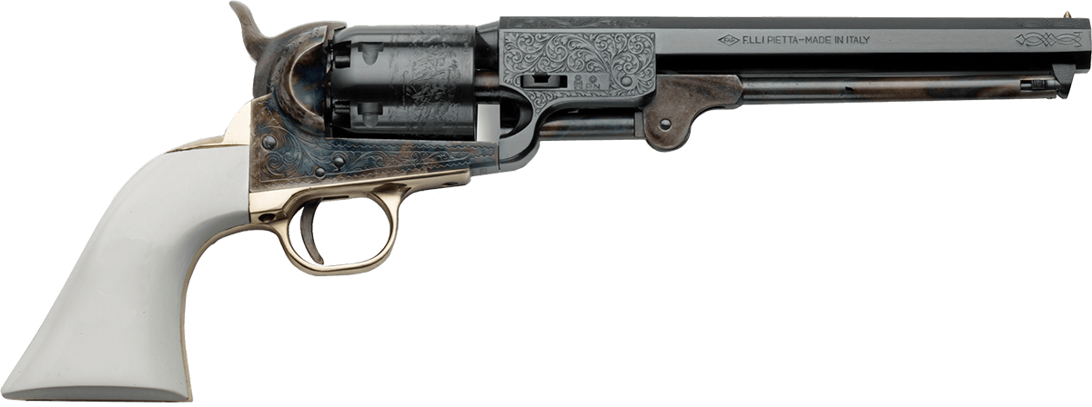 The 1851 Colt Navy has always been considered one of the best balanced and most accurate of all percussion revolvers. It was the favored revolver of renowned shootist Wild Bill Hickok, who carried two of them as his most trustworthy defense throughout the days of the Wild West.