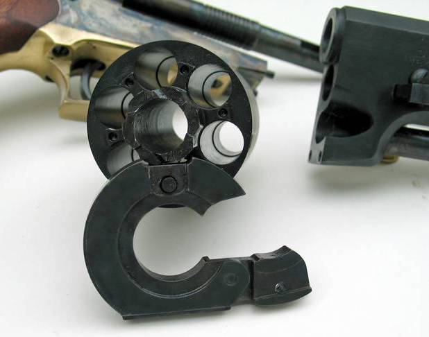 This cartridge conversion will fit the 1st, 2nd and 3rd model Colt Dragoon revolvers. It converts the .44 caliber percussion revolver to a six shot, .45 Colt cartridge that also accepts the shorter .45 Schofield cartridges. Fortunately the .44 caliber Cap & Ball barrel has the same bore dimensions as the present day .45 centerfire caliber.